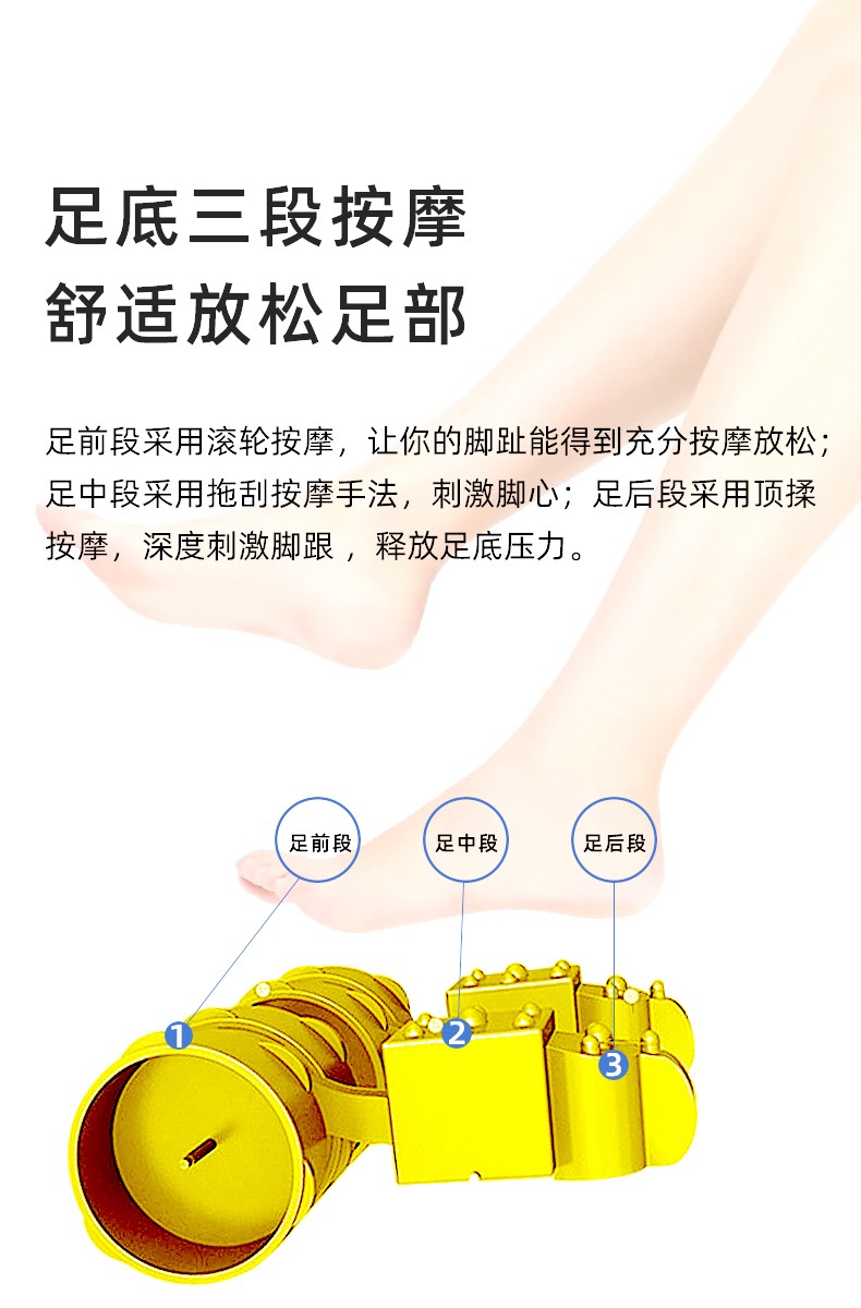 腳底 滾輪按壓(腳趾)、刮痧(腳底)、頂(腳后跟)按摩 (多模式,多強(qiáng)度)