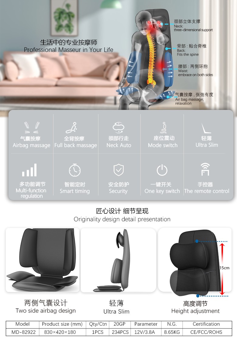 1.曲線行走機(jī)芯,符合人體工學(xué),頸部加熱,背部加熱