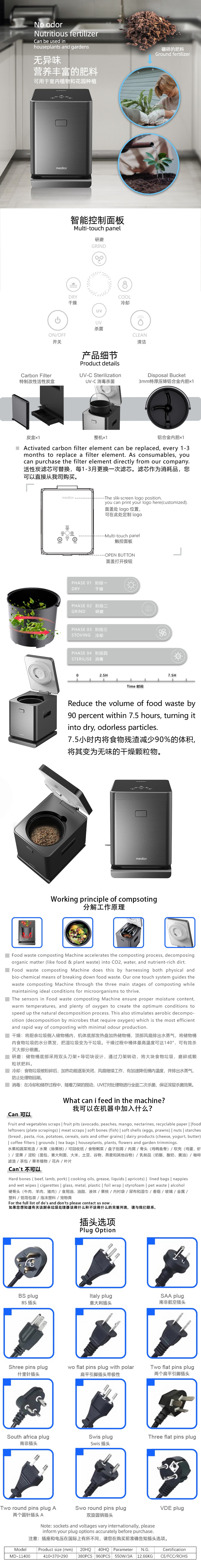 食物垃圾堆肥機(jī)加速堆肥過(guò)程,將有機(jī)物質(zhì)(如食物和植物垃圾)分解成二氧化碳,水和營(yíng)養(yǎng)豐富的污垢。