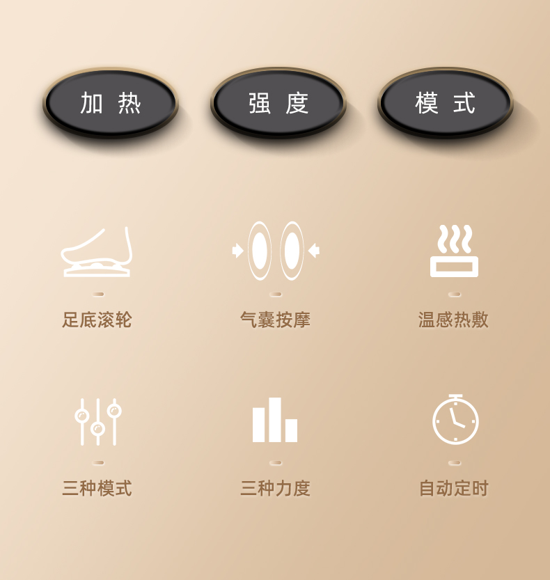 腳底 滾輪按壓(腳趾)、拖(腳底)、頂(腳后跟)按摩 (多模式,多強度)