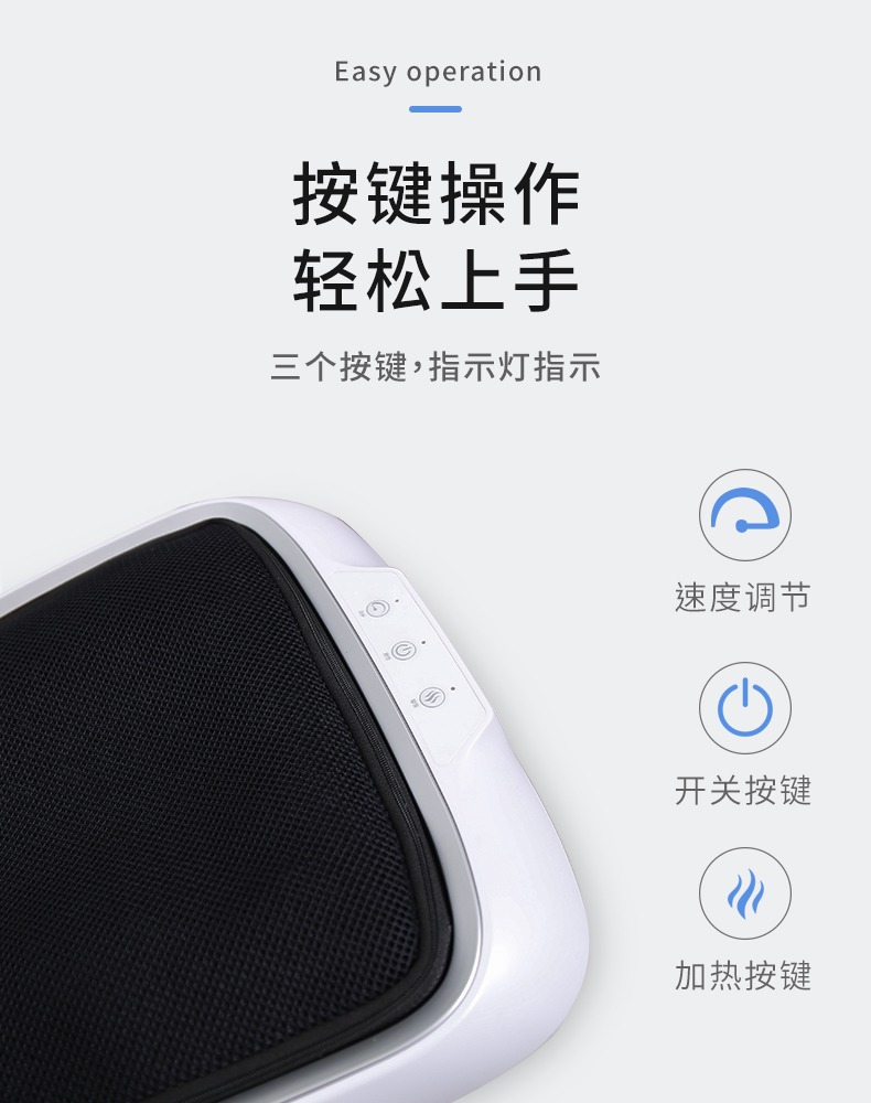 功能特征:腳底六個按摩頭,三檔力度調(diào)節(jié),按摩頭正反轉(zhuǎn),